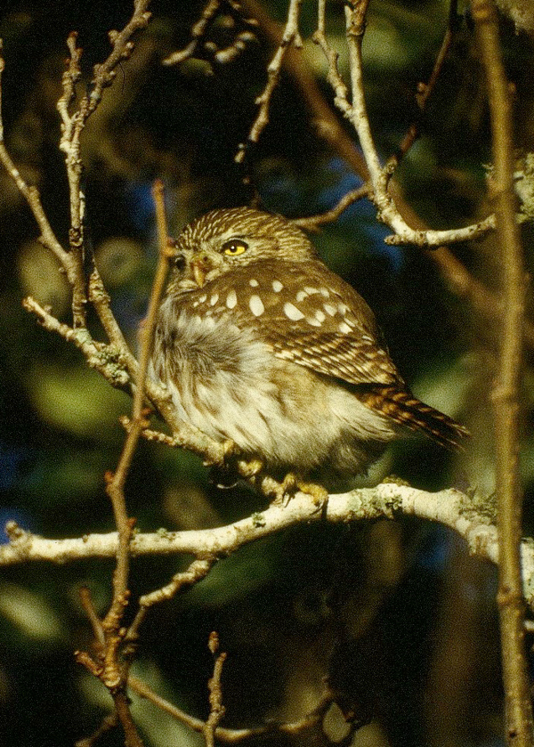 We drove in to the ranch house and walked into the backyard where the Ferruginous Pygmy-Owl was perched in one of the trees.